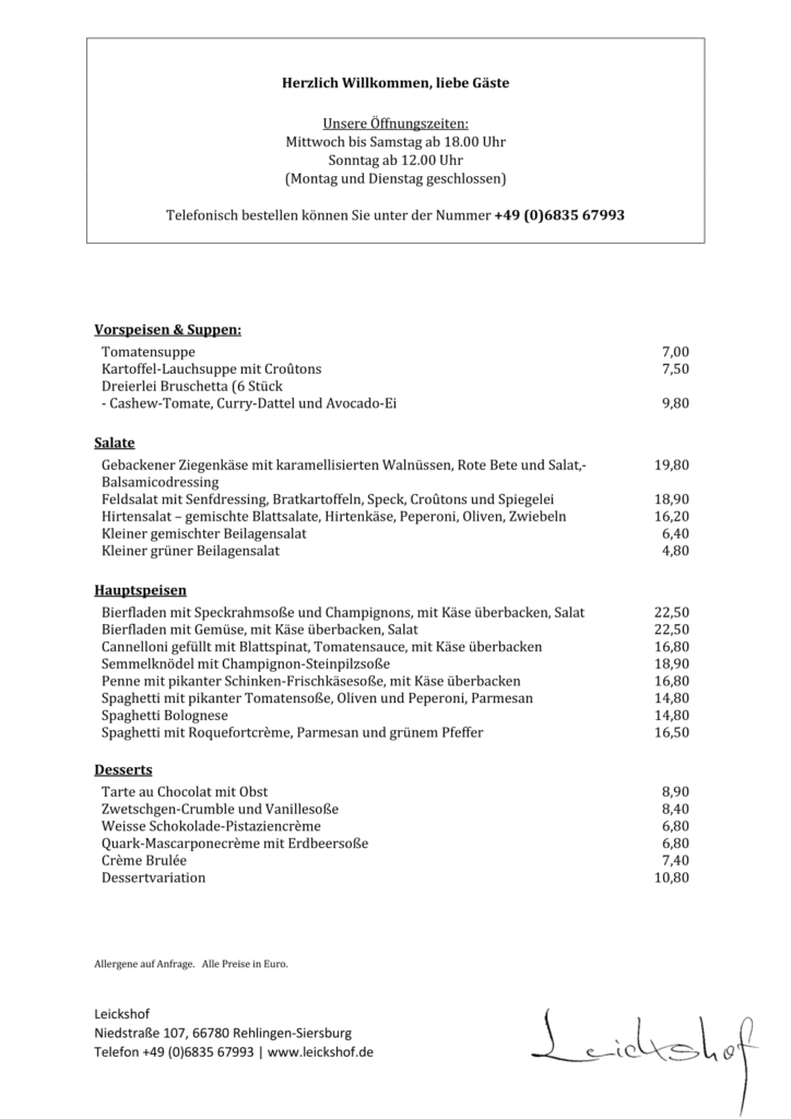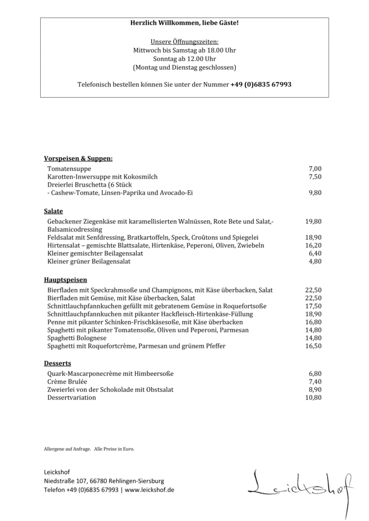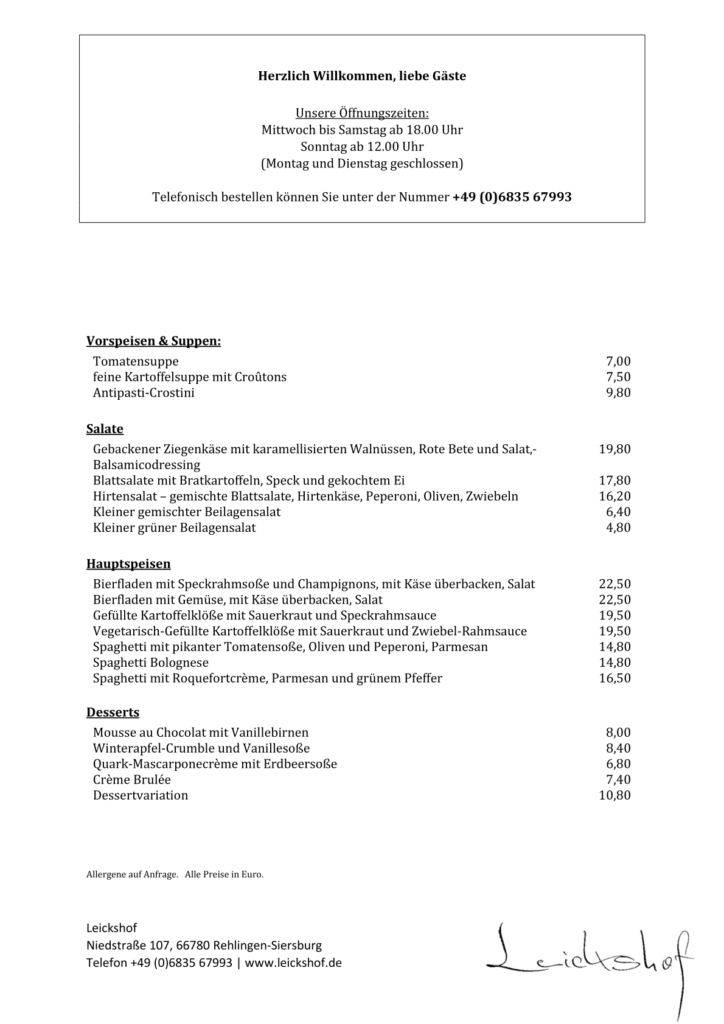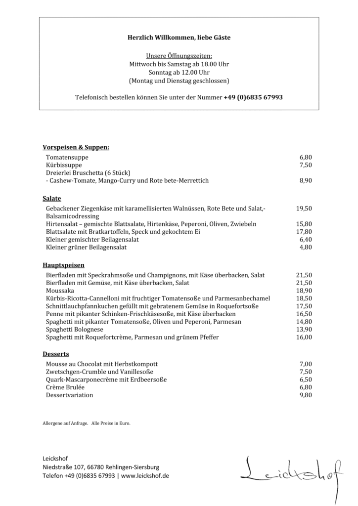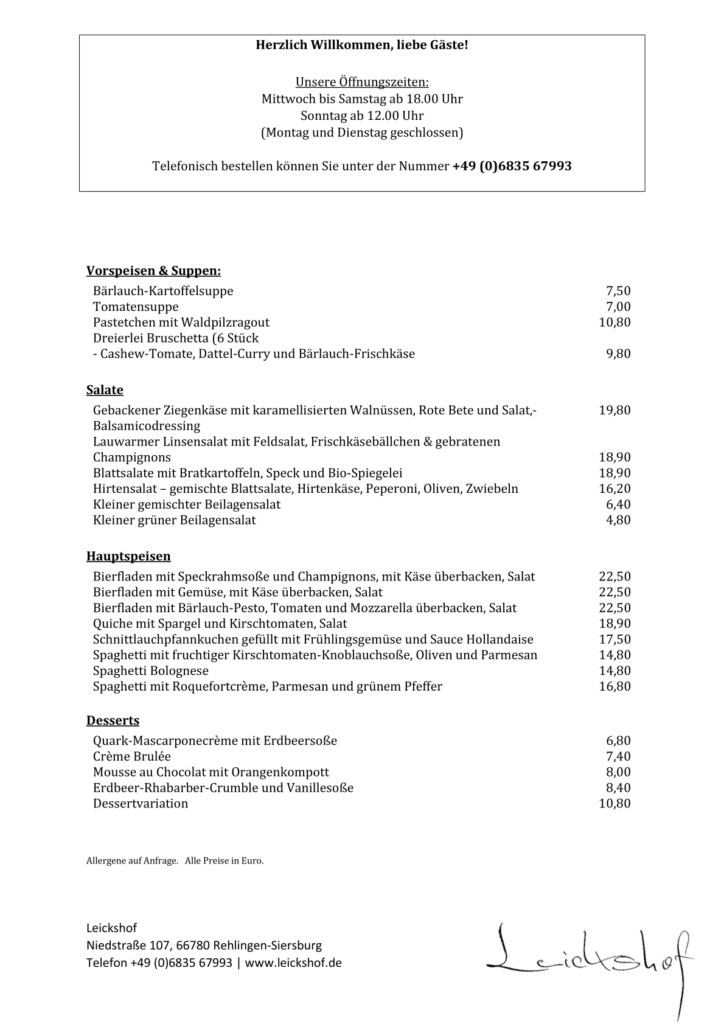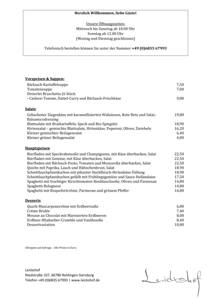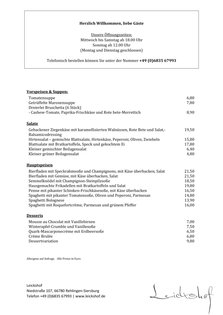 willkommen im Leickshof. Unsere Öffnungszeiten sind wie folgt: